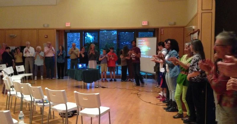 In the early evening, a lively team of young adults from a local Youth Build comes after a full day of painting apartments to help set up chairs for our community event! They start clapping their hands to the beat of “To My People” in the parking lot and it continues into the hall. That night, we have a crowd of all ages—from toddlers to elders—we talk and sing on themes of planting seeds, noble friendship, redefining success, and our shared humanity, all with a little Boston North Shore touch. Rev Clyde shares a powerful story of his daughter, a few young adults from nearby town Lynn share insights on planting seeds, and Sandra talks about different ways she’s expressed and learned about gratitude (like when she was driving with Ned and he went through the whole alphabet listing something he was grateful for that started with each letter)! At one point, Barbara gives me a hug and Heather’s toddler son tugs on his mother’s leg, “Look, they’re being kind” he tells her. :) Towards the end, everyone spontaneously gets up and self-organizes into a circle, linking hands like a beautiful collective blessing.